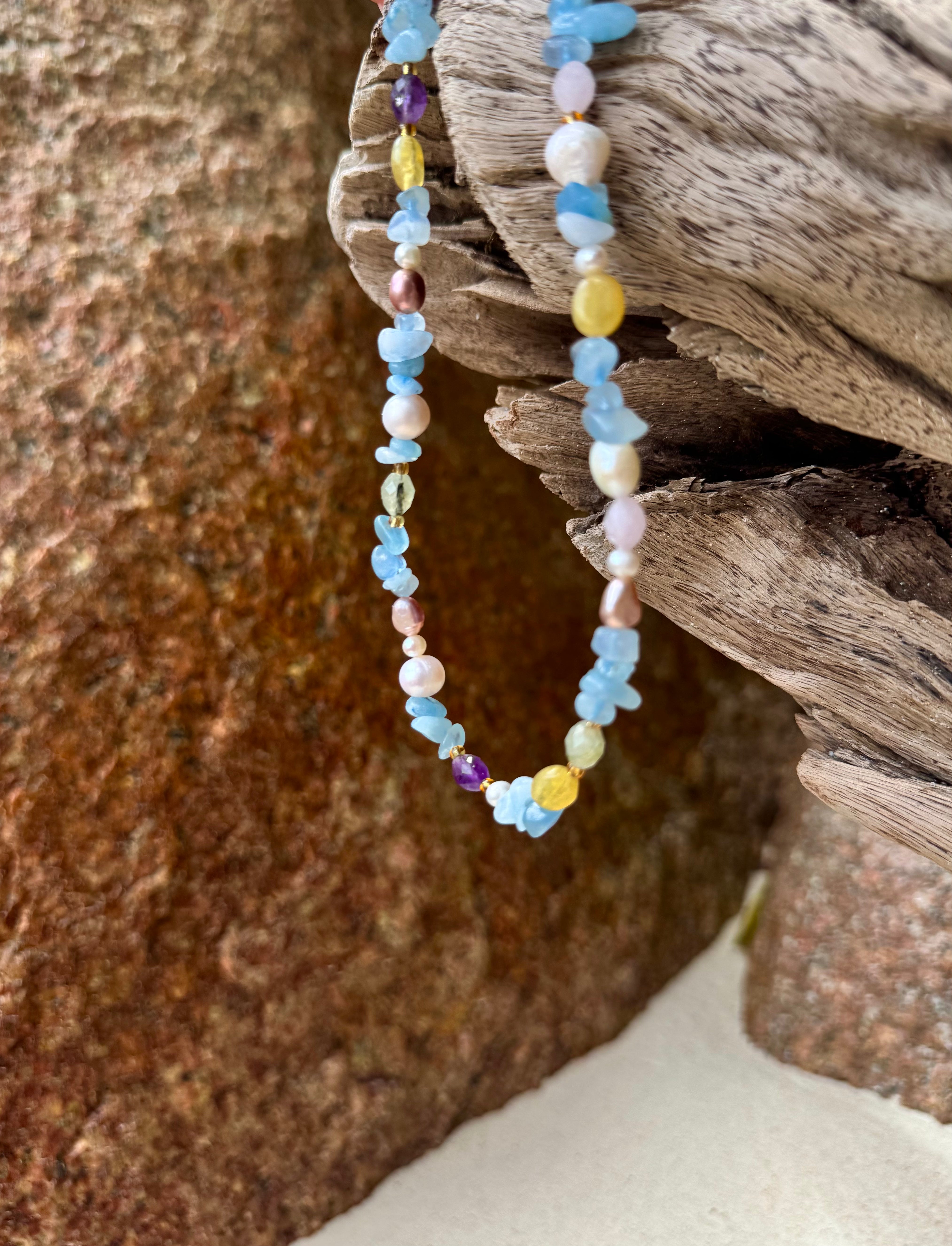 Naszyjnik z akwamarynu, pereł i cytrynu